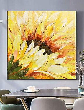 Pintura a óleo de flor colorida original feita à mão em tela abstrata floral decoração de arte de parede sala de estar decoração de casa com moldura esticada/sem pintura de moldura interna