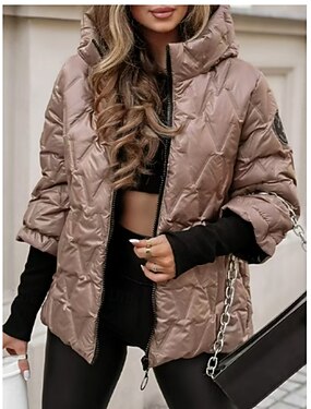 Mulheres Jaqueta de Inverno Casaco puffer Casual Diário Inverno Padrão Casaco Gola Alta Ajuste Largo Manter Quente Casual Casaco Manga Longa Cor Sólida Detalhes em Pêlo Cinzento Prateado Preto