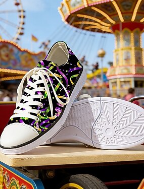 Tênis de Lona com Estampa de Confete para Mulheres - Sapatos Casuais Estilosos para Paradas de Carnaval Passeios em Parques de Diversão Celebrações de Rua e Passeios Diários de Verão