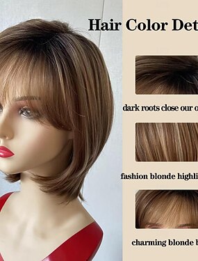 perucas marrom bob para mulheres loiras mechas curtas retas cabelo sintético peruca de parte do meio