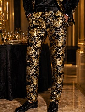 Retro Vintage Barroco Anos 80 Calças Cavalheiro Jacquard Floral Fantasia Homens Baile de Máscaras Coquetel Festa Temática Retro Adulto Calças Todas as Estações