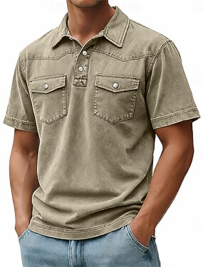 Homens Camisas Polo Waffle Textura Casual Feriado Lapela gola pólo com nervuras Manga Curta Moda Básico Tecido Botões Macia Verão Primavera Normal Cinzento Prateado Amarelo Claro Branco Leite