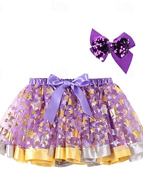Vestido para Meninas das Flores Para Meninas Vestido formal Traje de casamento Festa Casamento Formal Adorável Princesa Patchwork Com Transparência Estrela Manga Curta Gola Redonda Preto Rosa 4 anos +