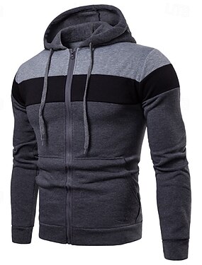 Homens Moletom Full Zip Hoodie Moletom de lã Preto Amarelo Vermelho Azul Cinzento Com Capuz Tecido Patchwork Bloco de cor Desportos e Ar livre Casual Diário Roupa de rua Legal Roupa de Esporte