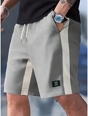 Homens Calções Waffle Calção Shorts casuais Patchwork Bloco de cor Tecido Conforto Respirável Acima do Joelho Casual Ao ar livre Praia Férias Moda Preto Cinzento Sem Elasticidade