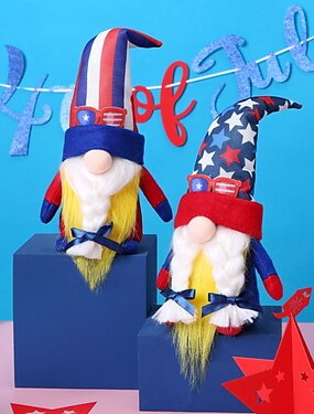 Dia da Independência, pentagrama listrado, boneca sem rosto, anão Rudolf, enfeite de boneca, desenho animado, estilo americano