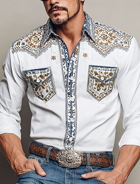 Homens Estampa floral Étnico Flores Camisa Social camisa ocidental Camisa de caubói Manga Longa Vintage retrô Casual Ao ar livre Roupa de Trabalho Primavera Outono Aberto para a Lateral Dois bolsos