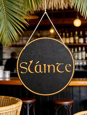 Placa de madeira suspensa Sláinte do Dia de São Patrício decoração de parede de pub irlandês placa redonda decoração rústica para bar e sala de jogos para decoração do lar