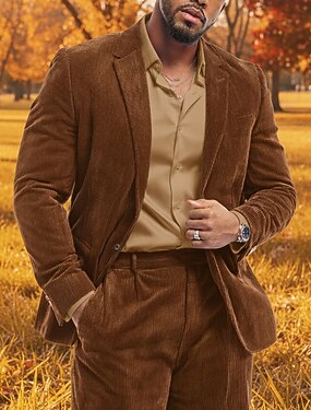 Masculino Terno de veludo cotelê Casual O negócio Preto Vinho Outono Terno Lapela Chanfrada Diário Negócio Cor Sólida Moderno Conjunto de 2 peças Comum 2 Botões