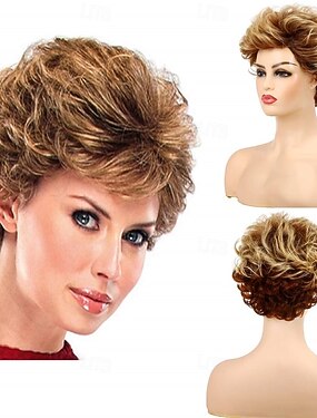 peruca curta marrom pixie cut, perucas de cabelo curto com franja, mechas loiras mistas, camadas de cabelo sintético fofo, peruca de substituição para mulheres, fantasias de Halloween