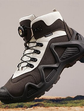 Botas masculinas marrons para caminhada ao ar livre com sola de borracha antiderrapante, calçados de trekking de couro sintético à prova d'água para camping e aventura
