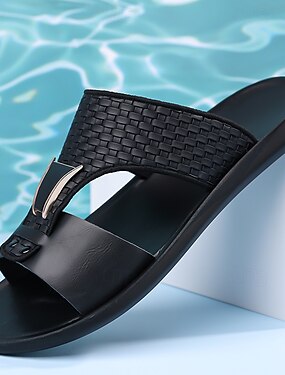 Chinelo masculino ajustável, sandálias confortáveis de couro sintético para uso casual na praia e em resorts.