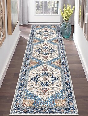 Tapete de corredor em estilo étnico persa, imitação de cashmere, durável, antiderrapante, para quarto, cabeceira, fácil de limpar, para sala de estar.