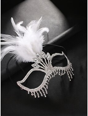 Máscara de baile de penas de Gatsby feminina com strass - acessório de fantasia elegante para festa de Halloween, coquetel e baile temático dos anos 1920
