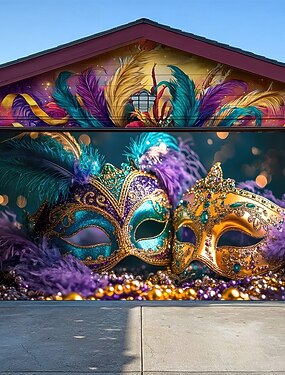Carnaval Tampa da porta da garagem Grande pendurado Máscara Pena Luxo 3D Vibrante De Festa Exterior Fundos de fotografia Porta de Entrada Baile de Máscara Decoração de casa