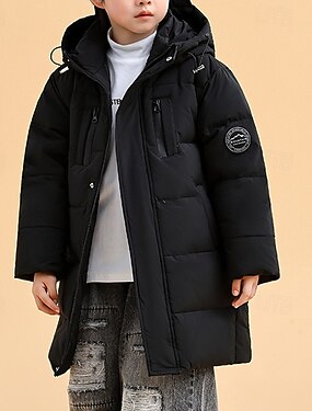 Infantil Para Meninos Jaqueta de penas Casaco com capuz Casaco puffer agasalhos Gráfico Manga Longa Bolsos Mantenha Quente A prova de Vento Casaco Casual Diário Básico Preto Branco Marron Outono