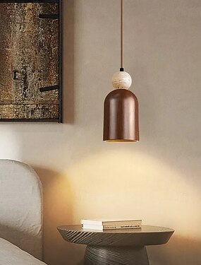 Luminária pendente LED wabi sabi em madeira travertino, com ajuste de altura.
