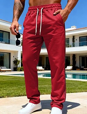 Homens Calças Esportivas Calças Calça de moletom de perna reta Com Cordão Bolsos Cintura elástica Tecido Conforto Macio Comprimento total Ao ar livre Casual Diário Moda Estilo Clássico Preto Vermelho