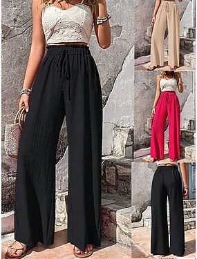 Mulheres Calças Calça casual Calça verão Calças de praia Férias Moda Casual Diário Comprimento total Cintura Média Côr Sólida Tecido Perna larga Conforto Macio Respirável Micro-Elástica Streetwear
