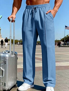 Homens Waffle Calças Esportivas Calças Calça de moletom de perna reta Calça Waffle Com Cordão Cintura elástica Tecido Respirável Comprimento total Ao ar livre Casual Diário Férias Estilo Clássico