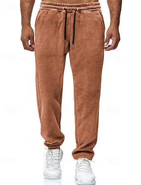 Homens Calças Esportivas Calças de lã Calças Calças de inverno Calça de moletom de perna reta Com Cordão Bolsos Cintura elástica Tecido Conforto Quente Diário Ao ar livre Feriado Moda Estilo Clássico