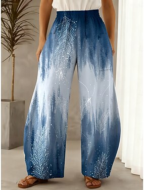 Mulheres Perna larga Calças Calças Cropped Férias Vintage Básico Mimolet Cintura Alta Floral Gráfico Imprimir Confortável Conforto Respirabilidade Sem Elasticidade Diário Ao ar livre Rua Azul