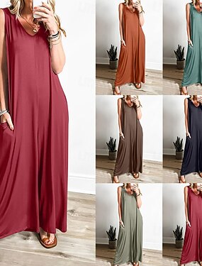 Mulheres Normal Macacão Ativo Côr Sólida Sem Manga Perna larga Gola Redonda Bolsos Diário Férias Ajuste Largo Azul Preto Vermelho Verão