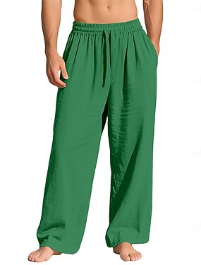 Homens Calças de linho Calças Calça verão Calças largas Com Cordão Cintura elástica Perna reta Tecido Leve Respirável Comprimento total Diário Ao ar livre Feriado Férias Moda Green + Gray Preto