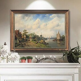 pintura a óleo artesanal lona decoração da arte da parede vintage paisagem obras-primas vista para o rio com moinho de vento para decoração de casa rolou sem moldura pintura não esticada