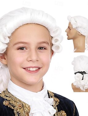 Peruca Longa Cacheada de Juiz Colonial Cosplay – Leve e Transformativa para Eventos e Festas