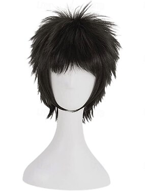 Peruca masculina curta castanha em camadas, resistente ao calor, de material sintético, ideal para uso diário em festas e cosplay.