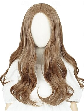 Perucas cosplay Marrom Encaracolado Cabelo Sintético Longo perucas Para Meninas perucas Para festa