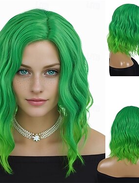 Peruca de Carnaval 2026 Verde Encaracolado Bob Curto Peruca sintética para festivais Mardi Gras Parada Cabelo para fantasia de cosplay para Feminino