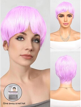 Perucas sintéticas Liso Com Franjas Fabrico à Máquina Peruca Curto Preto Cabelo Sintético Mulheres Macio Festa Confortável Preta Multi Cores