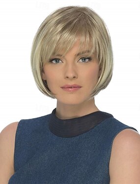 peruca curta loira reta, peruca de fibra sintética resistente ao calor de 10'', uso diário &cosplay, cor marrom natural – leve &respirável