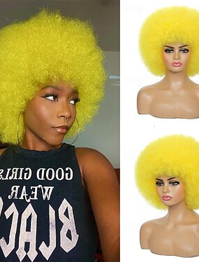 Perucas afro para mulheres negras, peruca disco dos anos 70 para mulheres, perucas afro naturais cacheadas, fofas e elásticas para uso diário e cosplay
