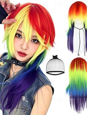 Peruca de Carnaval Vermelho Roxo Verde Liso Longo Peruca sintética para festivais Mardi Gras Parada Cabelo para fantasia de cosplay para Feminino
