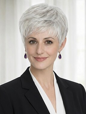 Peruca pixie curta e elegante prateada para mulheres - camadas suaves com volume leve