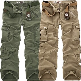 Homens Calças Cargo Calça cargo Calças Calças de trabalho Bolso multi Côr Sólida Xadrez Conforto Respirável Comprimento total Formal O negócio Algodão 100% Algodão Casual Delgado Exército verde Preto