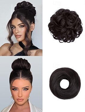 Aplique de cabelo coque desarrumado, aplique de cabelo coque com presilha para mulheres, coque falso cacheado, aplique de cabelo para penteado despenteado para uso diário e ocasiões especiais (1b#, 1
