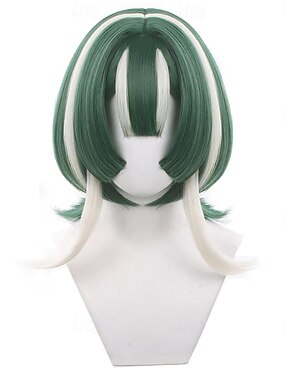 Peruca curta turquesa para cosplay, estilo tigela, com mechas brancas na frente e franja. Acessório de fantasia unissex para adultos.