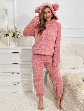 Mulheres Pijamas Loungewear Flanela Quente Moda Floral Listra Cintura elástica Calça Casa Diário De Cama Manga Longa Gola Redonda Rosa Claro pó branco Lotus Pink Branco Rosa Outono Inverno Ajuste