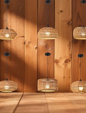 26 cm Design De Lanterna Formas geométricas Luzes Pingente Bambu Vintage Inspirado da Natureza 110-120V 220-240V