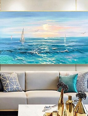 Extra grande artesanal azul seascape lona pintura a óleo artesanal arte de parede calmante abstrato seascape pintura para quarto personalizado azul claro & arte de pintura a óleo marrom sobre tela