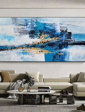 pintura a óleo artesanal lona arte da parede decoração moderna textura abstrata azul para sala de estar decoração de casa rolou pintura sem moldura não esticada