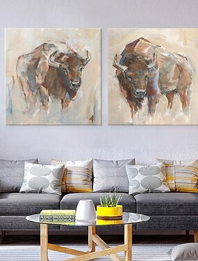 pintura a óleo artesanal lona arte da parede decoração animal moderno bonito dos desenhos animados cores iaque porco veado para decoração de casa rolou pintura sem moldura não esticada