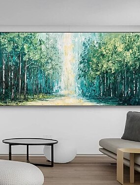3d floresta verde pintura tela pintada à mão arte de parede árvore tela abstrata pintura outono pintura artesanal estreita decoração de parede oversize grande abstrato azul decoração árvore paisagem