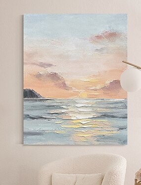Pintura a óleo pintada à mão arte da parede oceano pôr do sol paisagem decoração de casa decoração lona enrolada sem moldura não esticada
