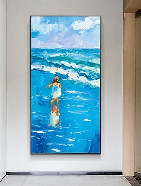 pintura a óleo artesanal lona decoração da arte da parede original surf pintura abstrata vista para o mar para decoração de casa com moldura esticada/sem pintura de moldura interna