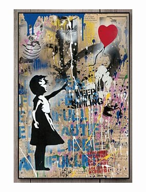 Balão de pintura a óleo pintado à mão, menina, arte de rua, decoração de casa, decoração de casa, lona rolada, sem moldura, sem esticar